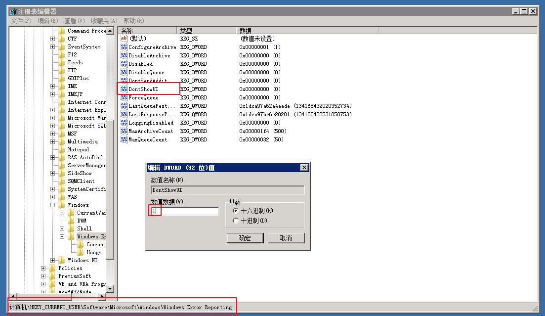 3.找到其中DontShowUI数据,右键修改成1(原来默认是0)